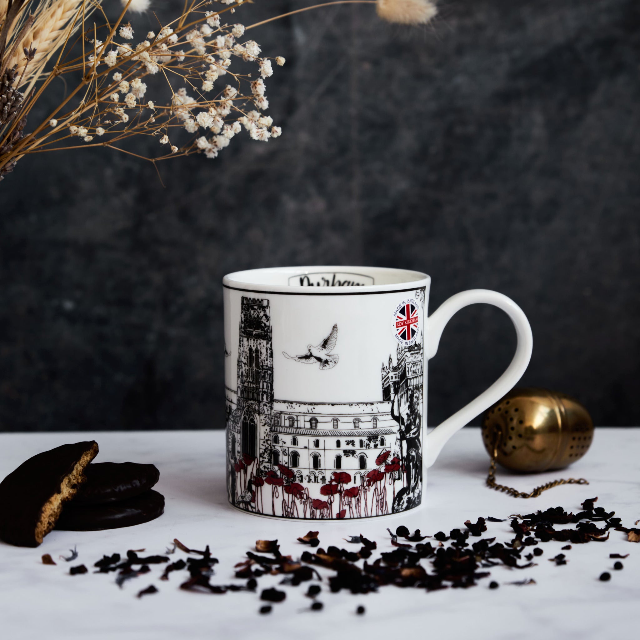 What sets this design apart is the addition of delicate red poppies, symbolising remembrance, resilience, and the enduring spirit of Durham. As you savour your favourite drink, you'll not only be immersed in the rich history and architectural beauty of Durham, but you'll also pay tribute to its heritage and the sacrifices made.